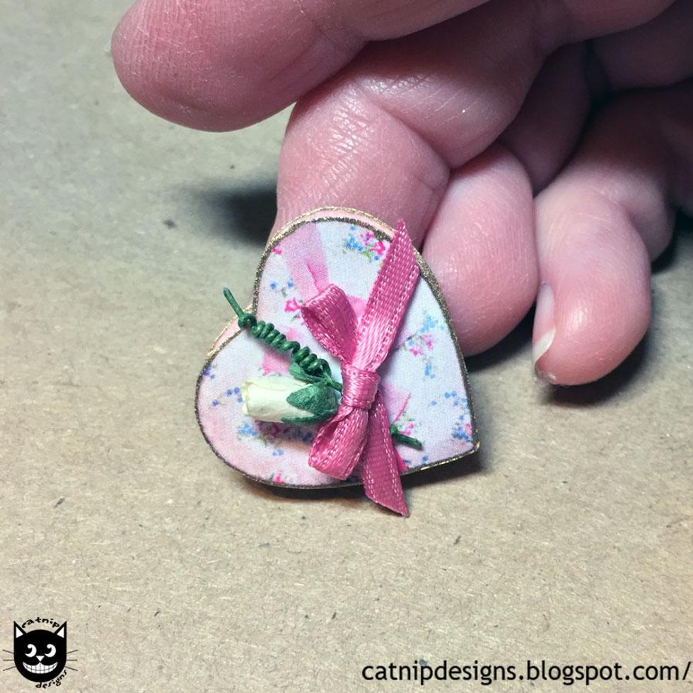 Glue on a tiny paper rose bud and ribbon bow. Or decorate in any way you like :)