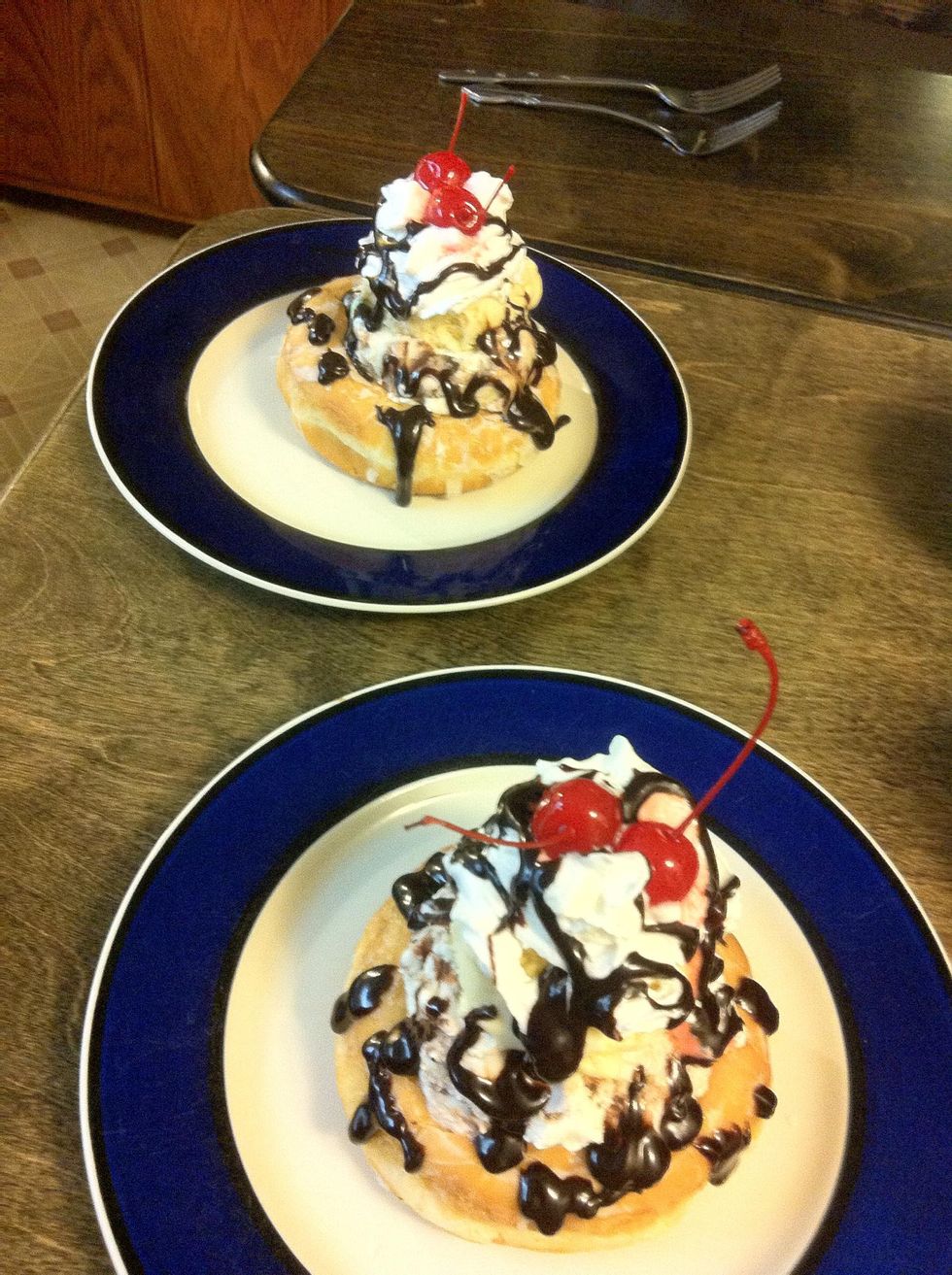 Place one scoop of delicious ice cream in the center of the donut or two.