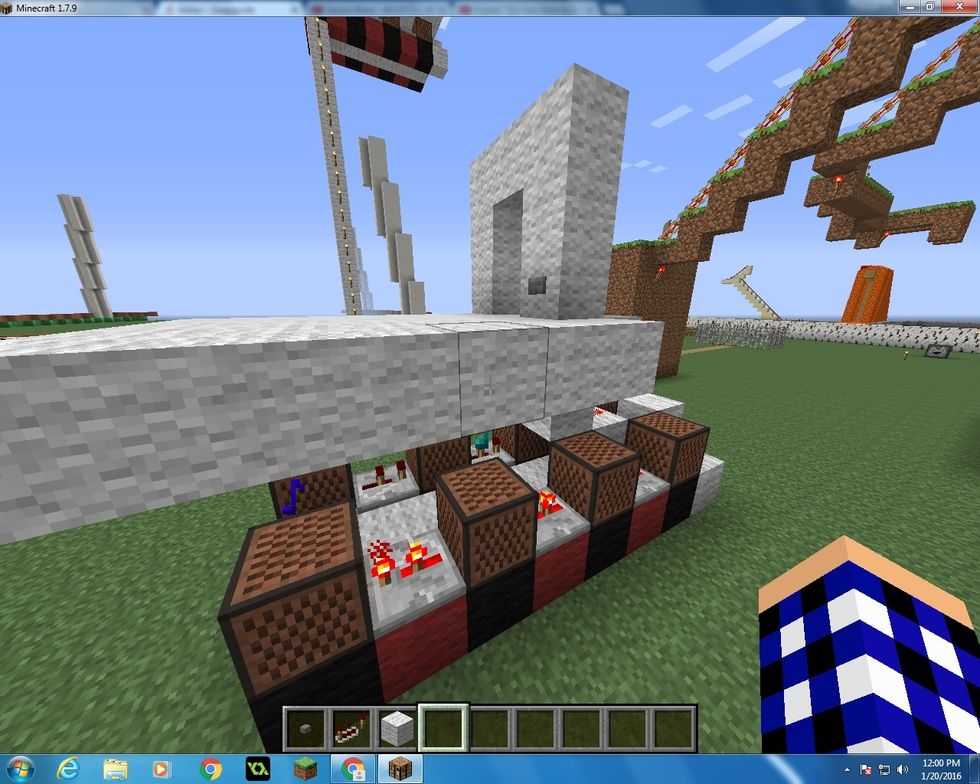 Next take another block of Wool and place it behind the first Note Block that you put down, put one Redstone on top of it.