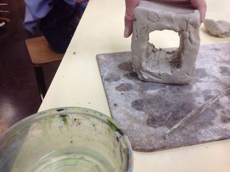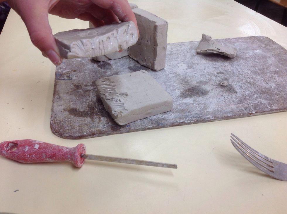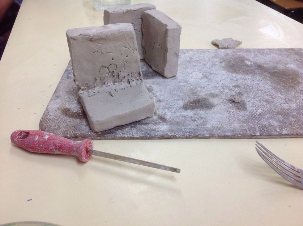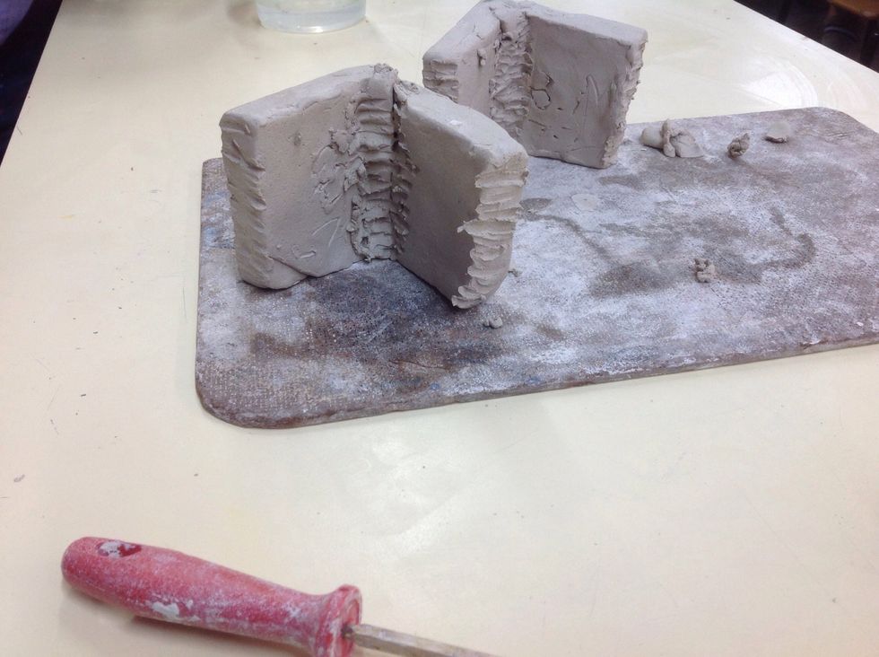 Now with your two half cubes you need to scratch were you are going to stick them together