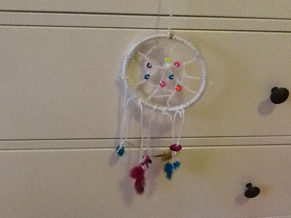 Now go crazy adding feathers and charms on string at the bottom