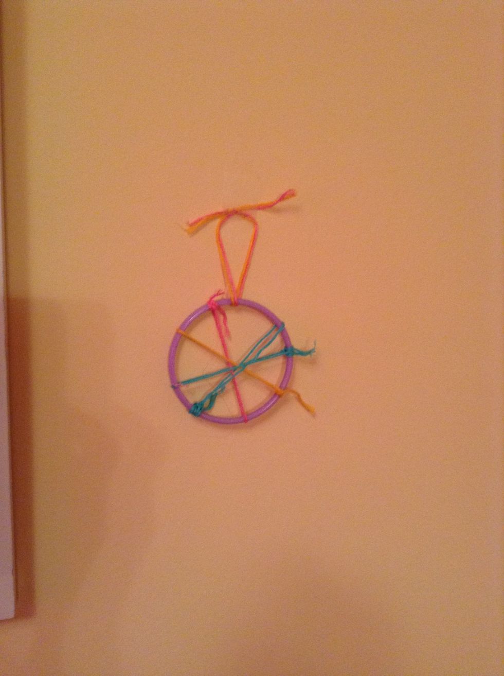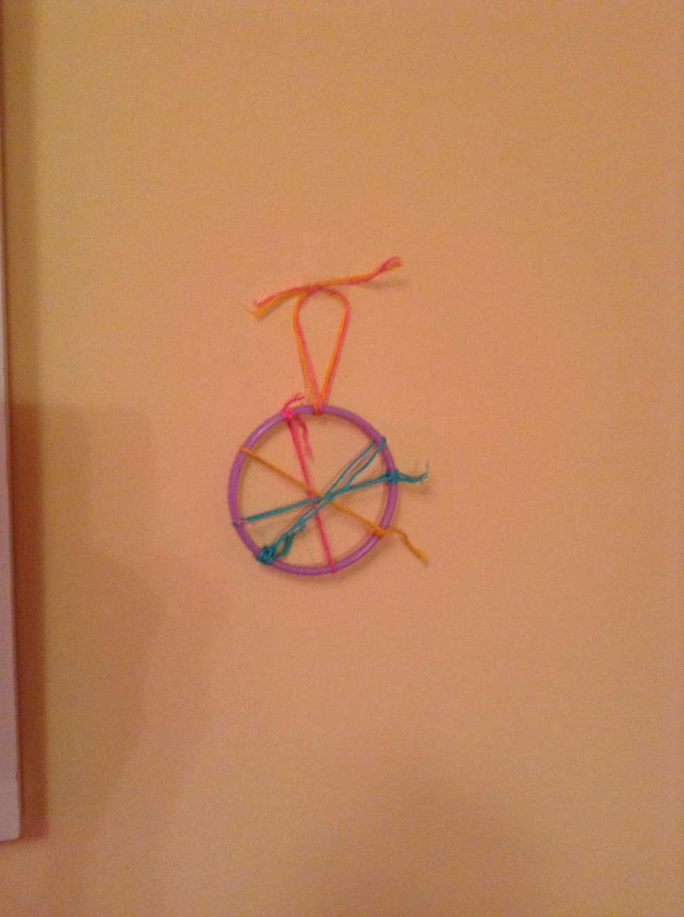 Now take the second 2 colors and tie them together. Then make them the part you use to hang as shown.