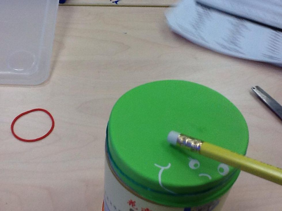 First,take a box,2 ballons,1 scissor,2 eraser tapes,1 pencil.Second, use scissor to cut out the ballons's mouth.Next,get 2 ballons on the box.Then, use the eraser tapes to tape the ballons.Finally, use a pencil to make drum sound.