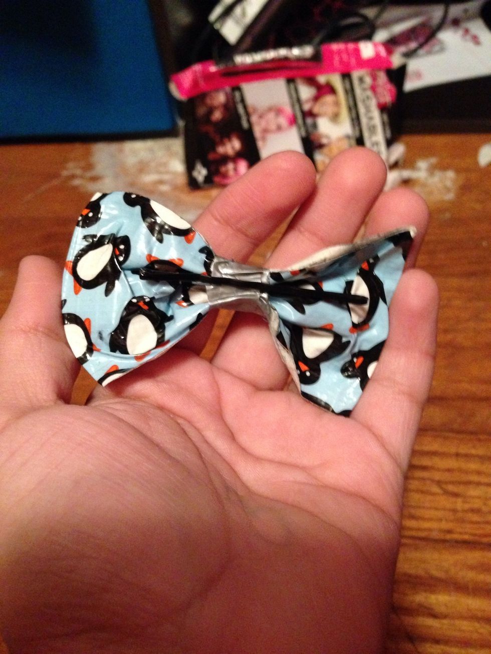 Cut a piece of tape the bigger the bigger the bow so I cut mine small:)