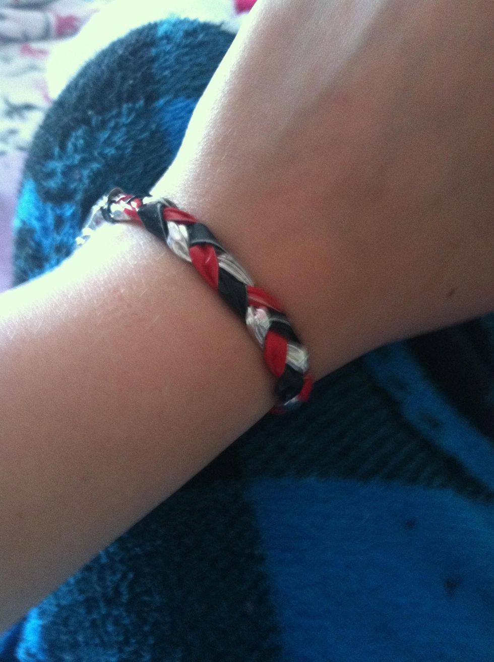 Now just do the same exact thing you just did twice more with two different color duct tapes if you don't have other colors you only have to do it once more because you can use the strip you put aside