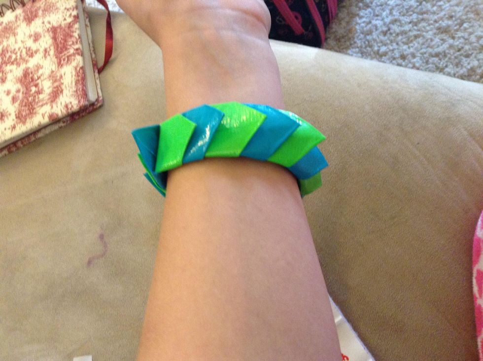 First cut a piece of duct tape about one inch longer than the size of your wrist