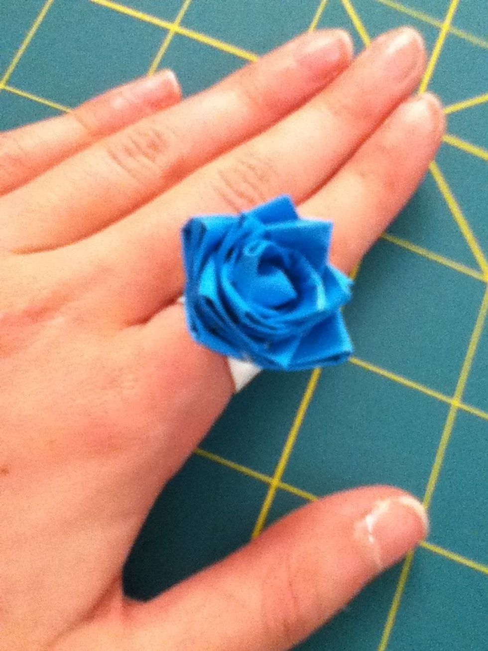 Now if you want to, put some blue tape on the top. Otherwise youll be able to see white in the middle of your flower. It doesnt matter if this parts messy.