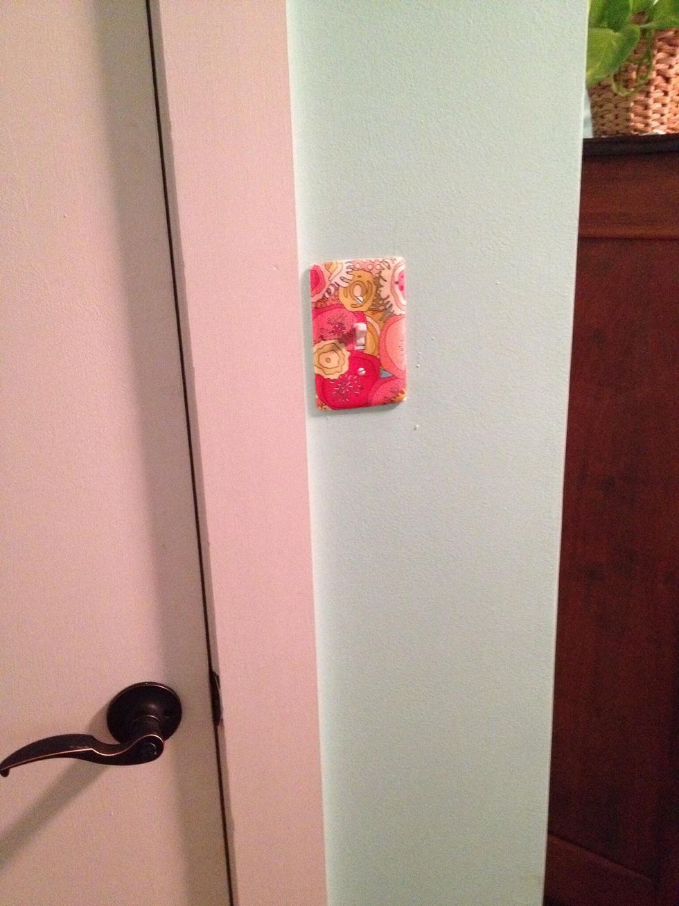 Supplies: light switch plate, fabric or paper, scissors, double-sided tape (optional).....