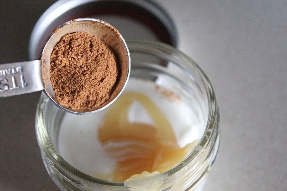 Gather your ingredients which will be cinnamon, honey, nutmeg, and lemon juice. Also grab any size bowl and some measuring cups.