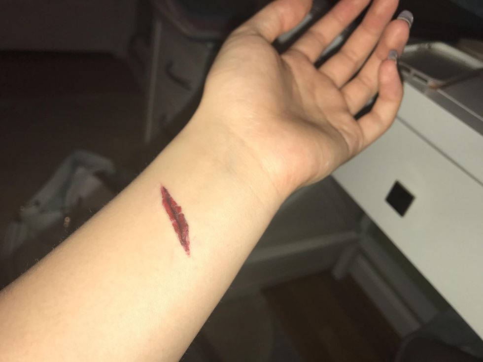 After you get your desired product, it should look something like this. Keep playing around and practice! Now you can go out scare your friends with this fake, easy cut! :)