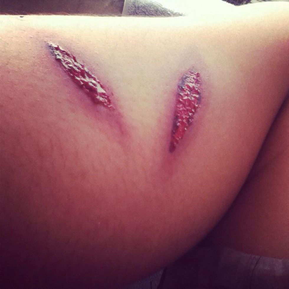 First u will need to draw your Wound shape and paint peach color with your brush with pink and red poster paints