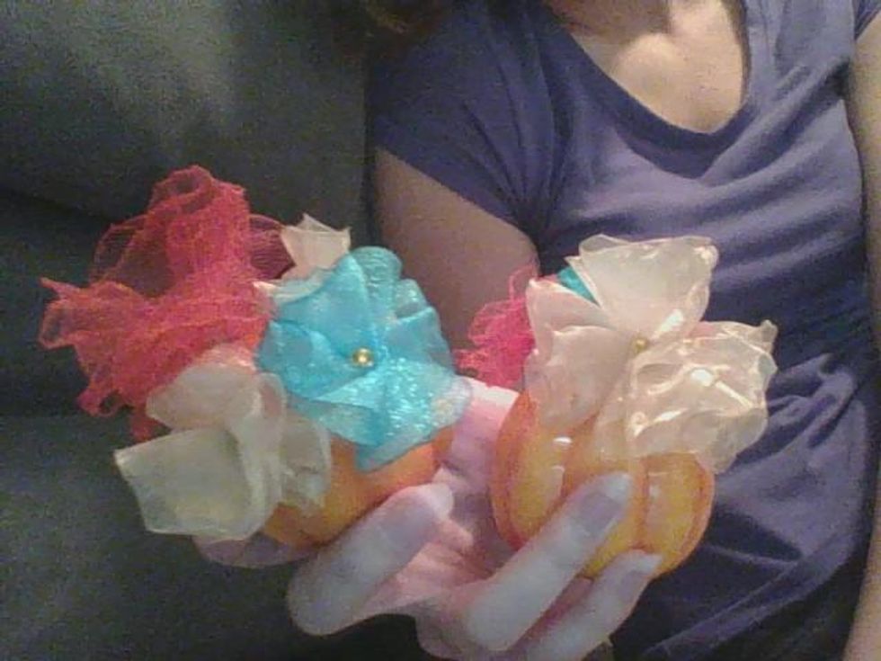 After that, put them in something (salt & pepper shakers shaped like pumpkins were used here) and all done.