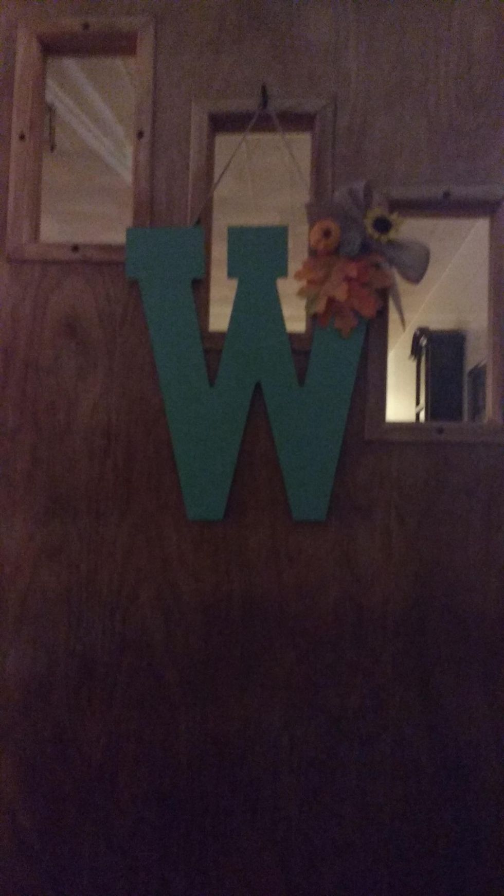 4. Hot glue the burlap ribbon to the wooden letter at a slight angle.