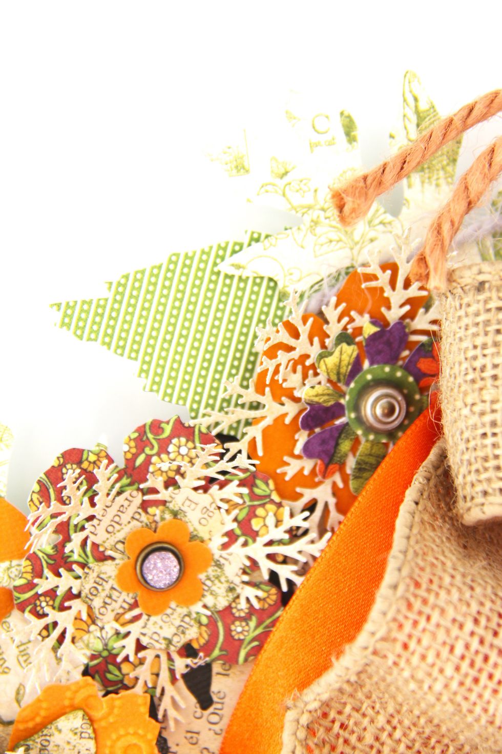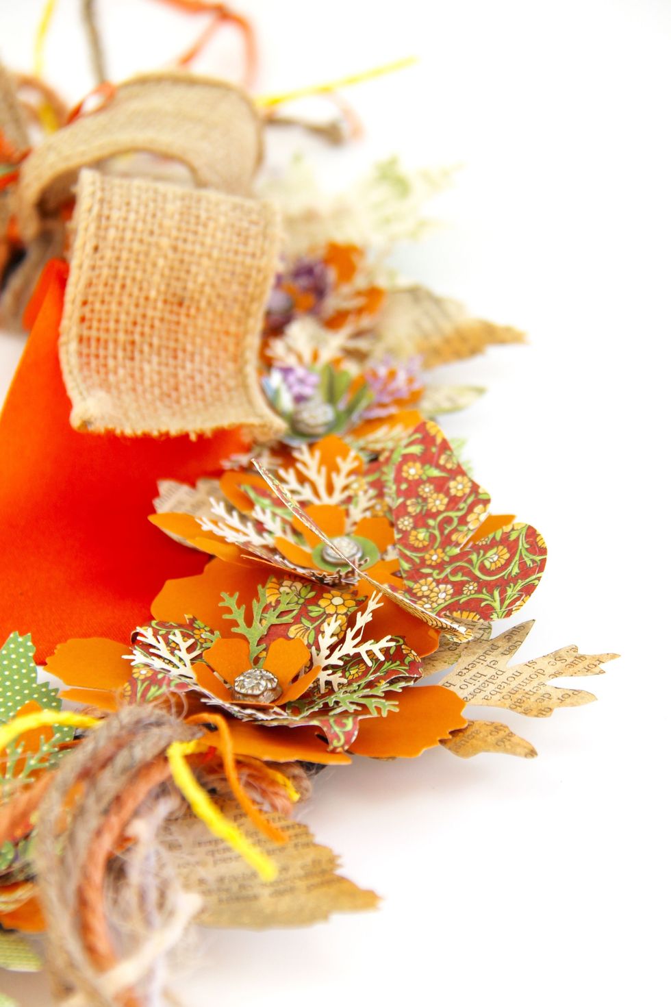 You will need to punch a lot of flowers, leaves and butterflies from different papers, also old book pages.