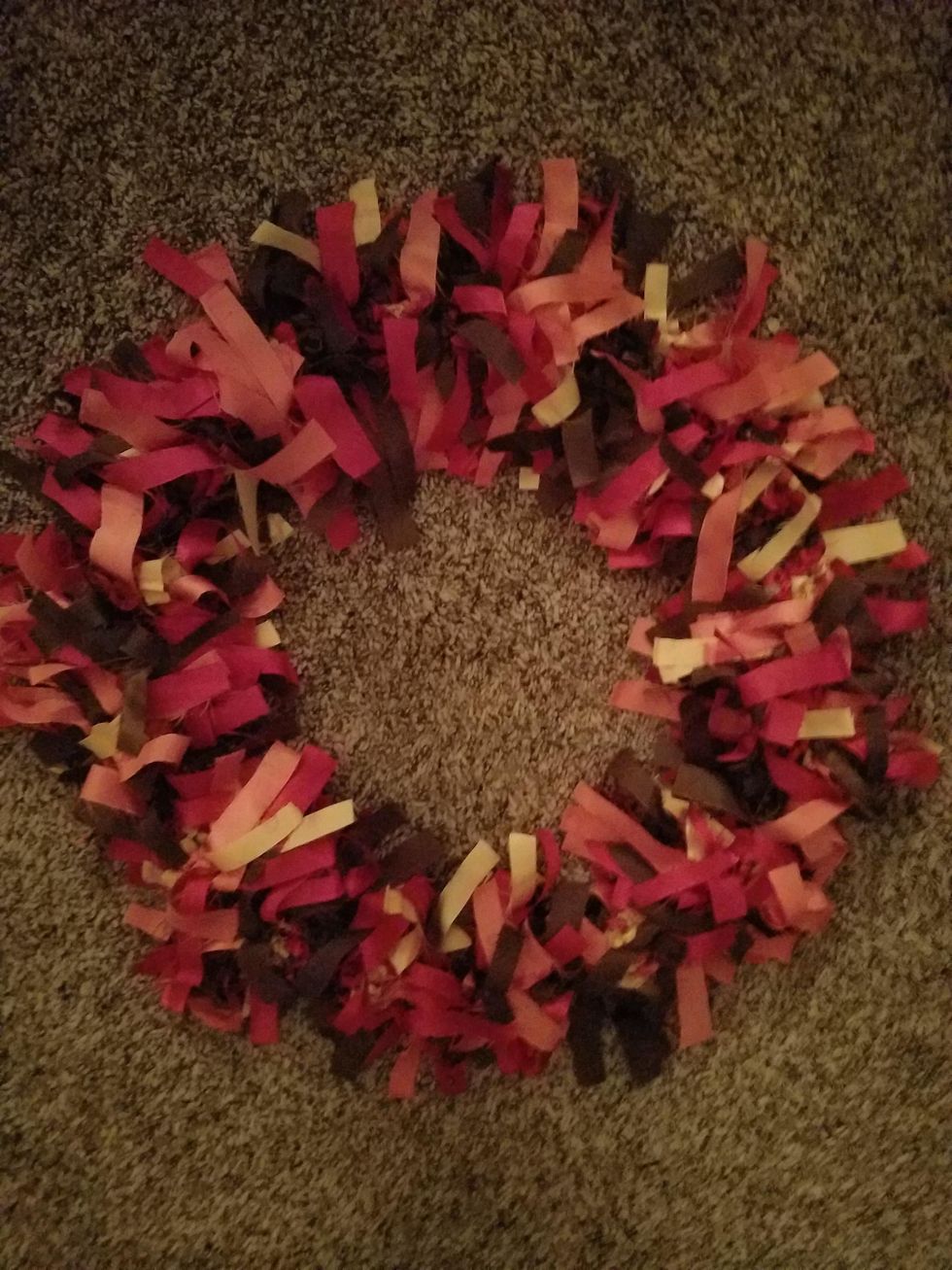When you are finished, you may add leaves or pinecones, or anything festive that is related to fall, to your wreathe so that it is more creative.