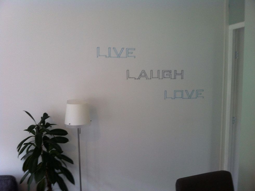Try to use only one strand of wool to make a word. Some letters are hard, an A or O for example. Use extra parts of rope then to complete. I used two extra small strands to make an A.