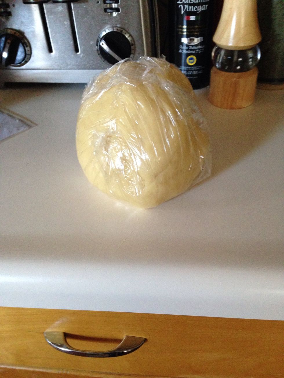 Pull the dough out of the mixer and wrap it in plastic wrap. I like to pat it into a ball so it's easier to wrap. Let it sit in the fridge for at least 2 hours.