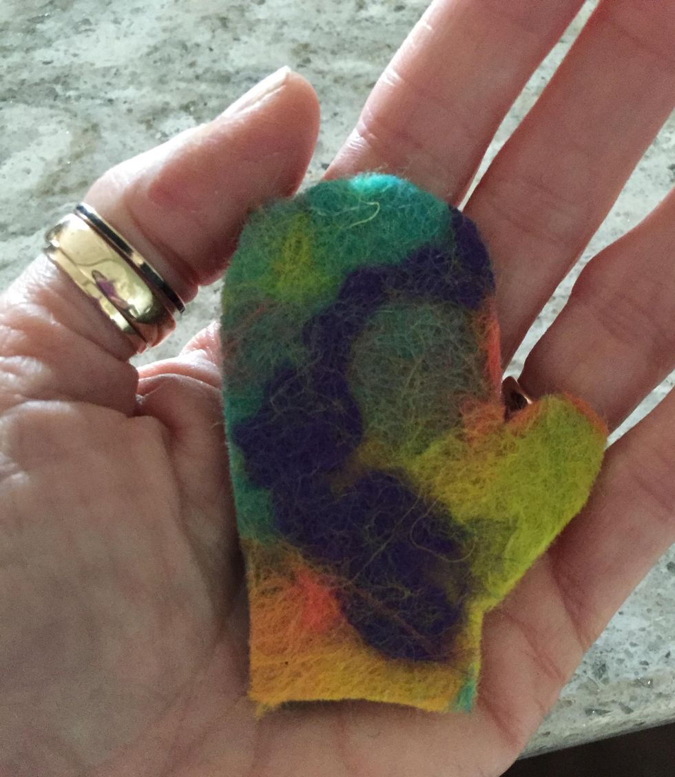 Now that you have your felted mitten you can decorate with embroidery thread! Hang from your Christmas tree as an ornament!