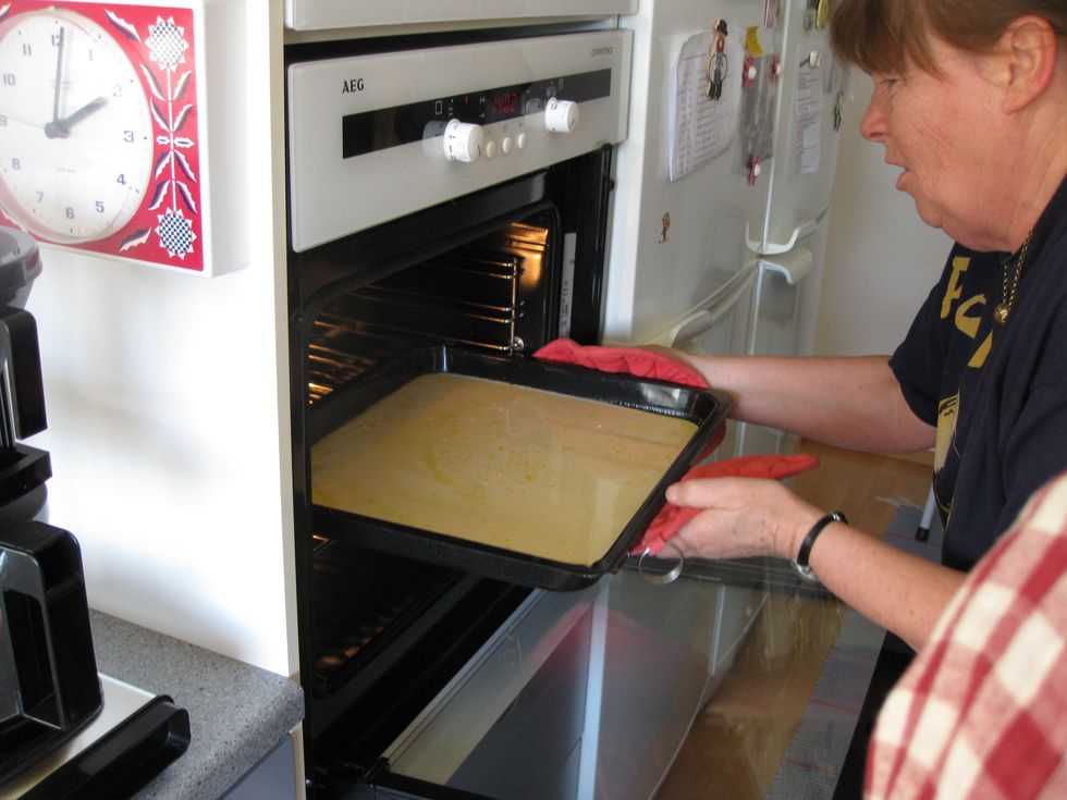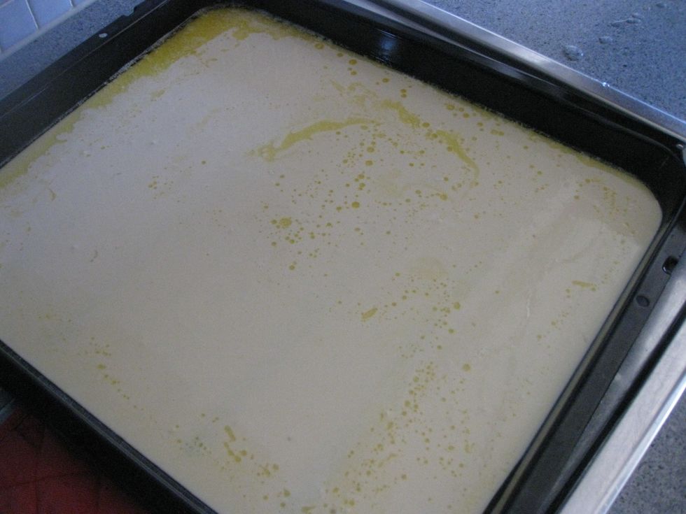 Pour the dough on the dish