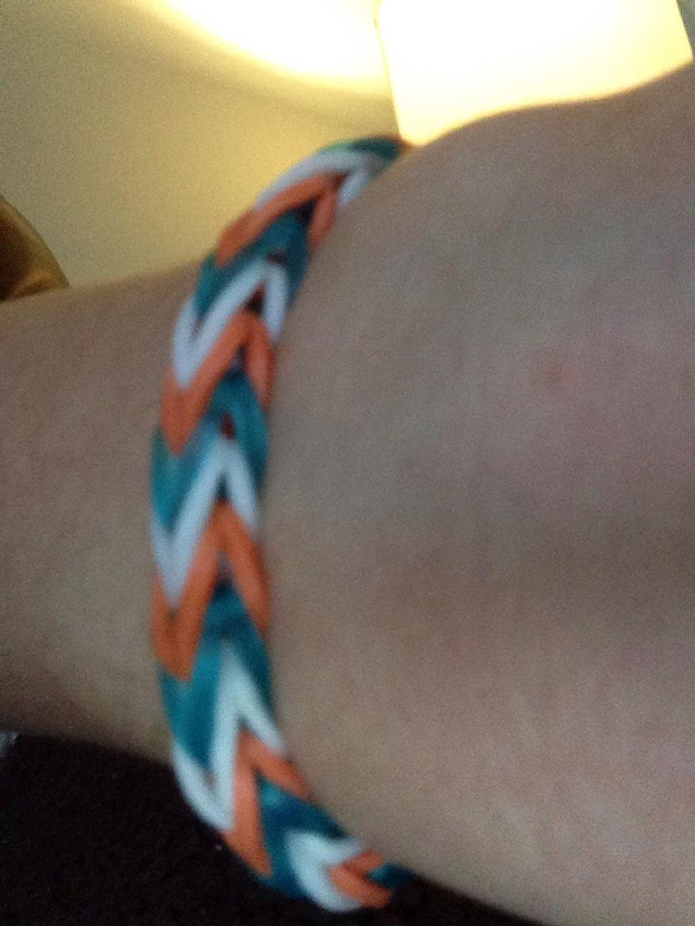 Then put to two different color bands on the top of the twisted band.