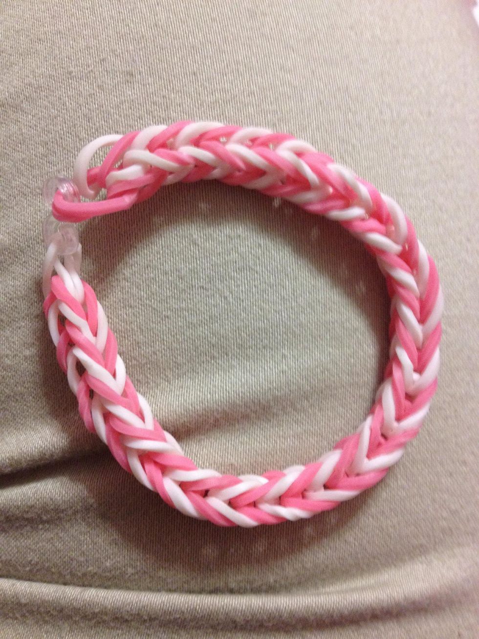 Do a number 8 of the rubber bands and placePut normal bands on top of it like thisThe fist band pull on sides go like this and put them in the centerDo that and repeat pull the end side and get the hook and done:)
