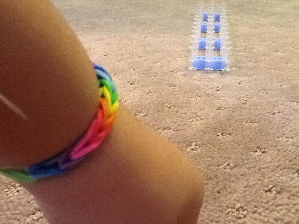 Gather your suppliesThen put on two more bands like this (not twisted)Then put another band on topKeep adding bands until it's about this longThen put the clip on the end of the bracelet like this