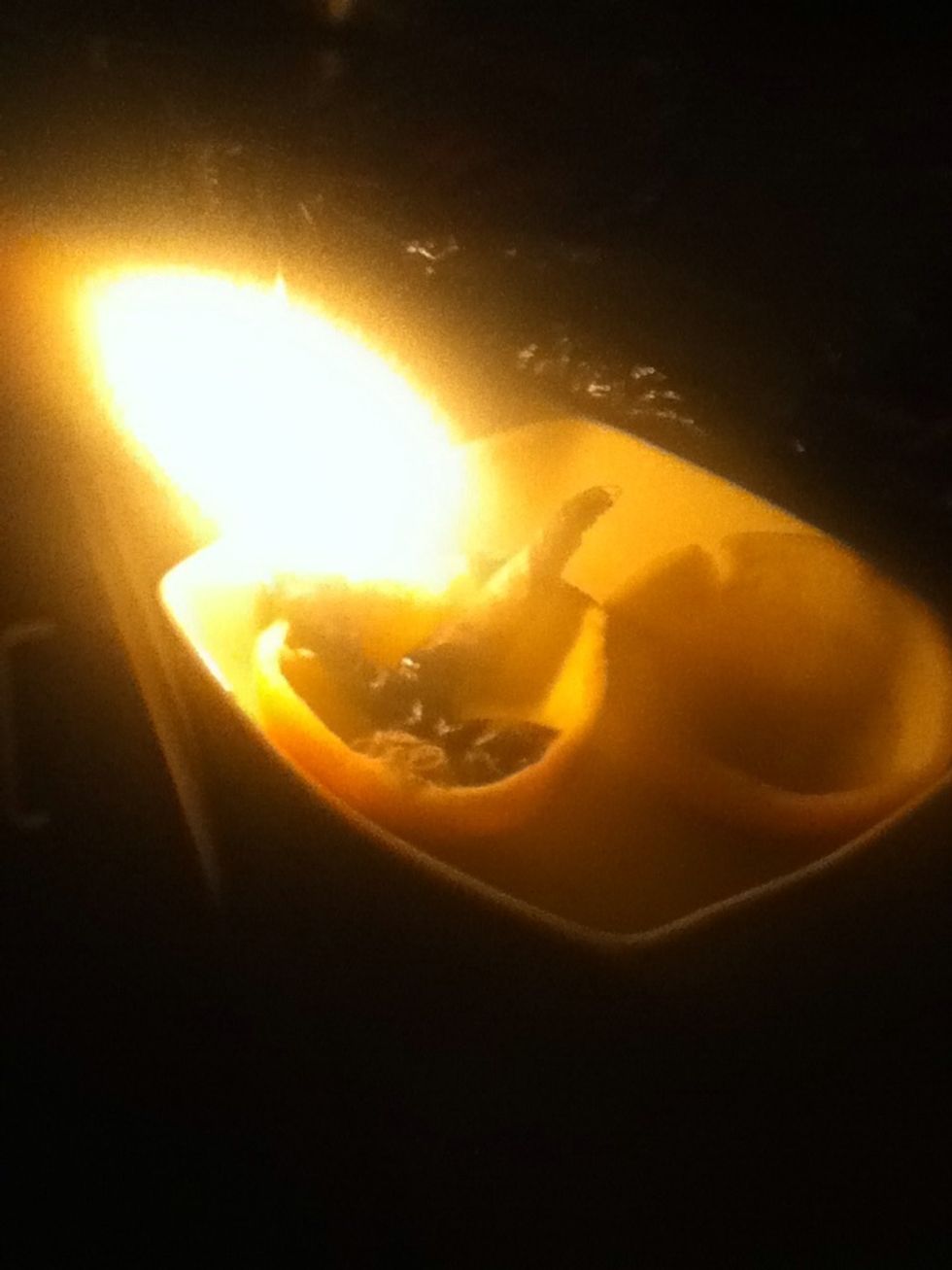 بعد ما *شلنا* القشر عن البرتقالة اصبحت بهذا الشكل after we removed the chaff about the onrange became like this