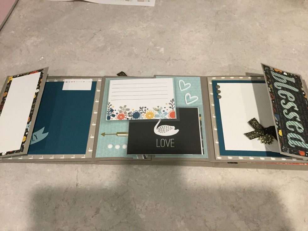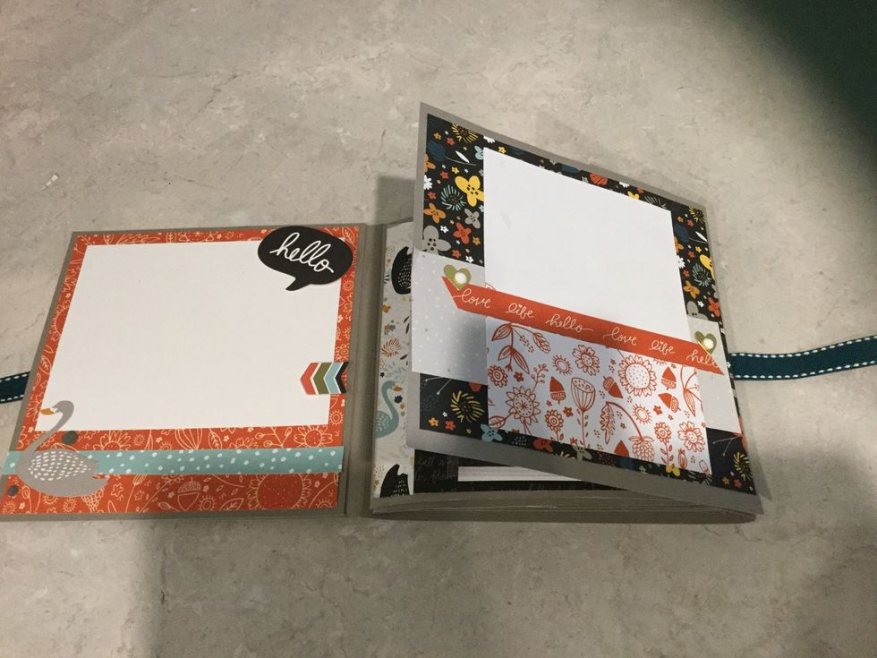 Adhere the other two pieces of 5-3/4 by 12 inch pieces of cardstock to the one with the double sided tape so that it looks like the photo above. Fold the flaps in. This is the inside of your album.