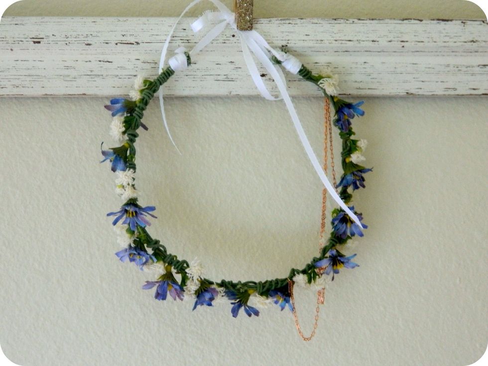 Begin to add your flowers by wrapping them at the stem with a new wire.