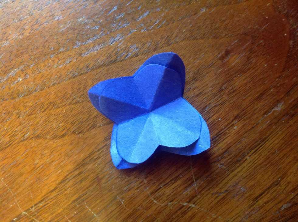 Then press both triangles down and where the decrease is. You want to fold the two tiny triangle away each other just like a book.