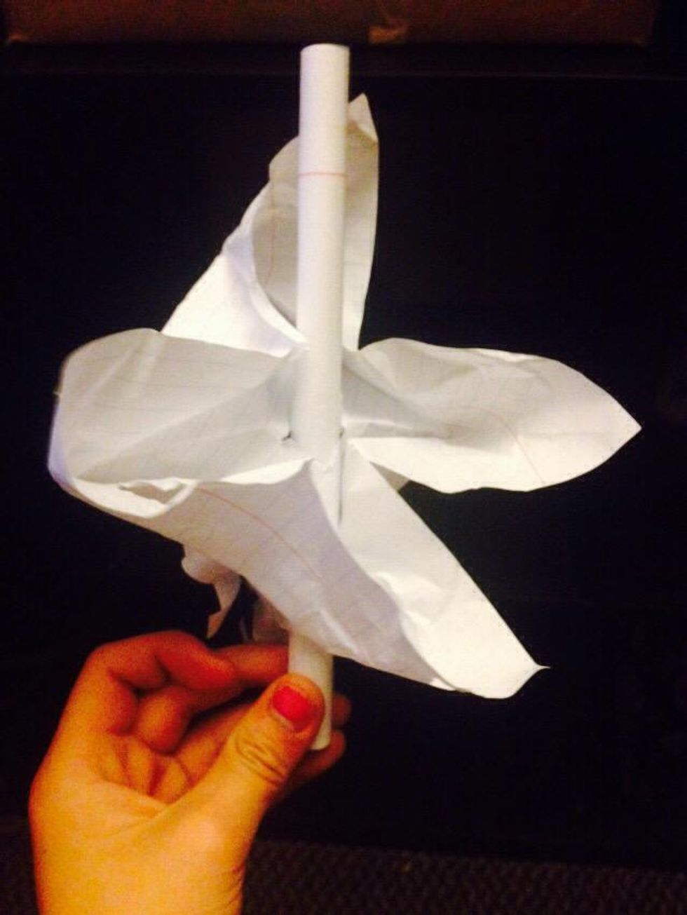 Next, Fold the top corner around to the other side of the paper like that, to make it look like the side of a 5 sided angle house.