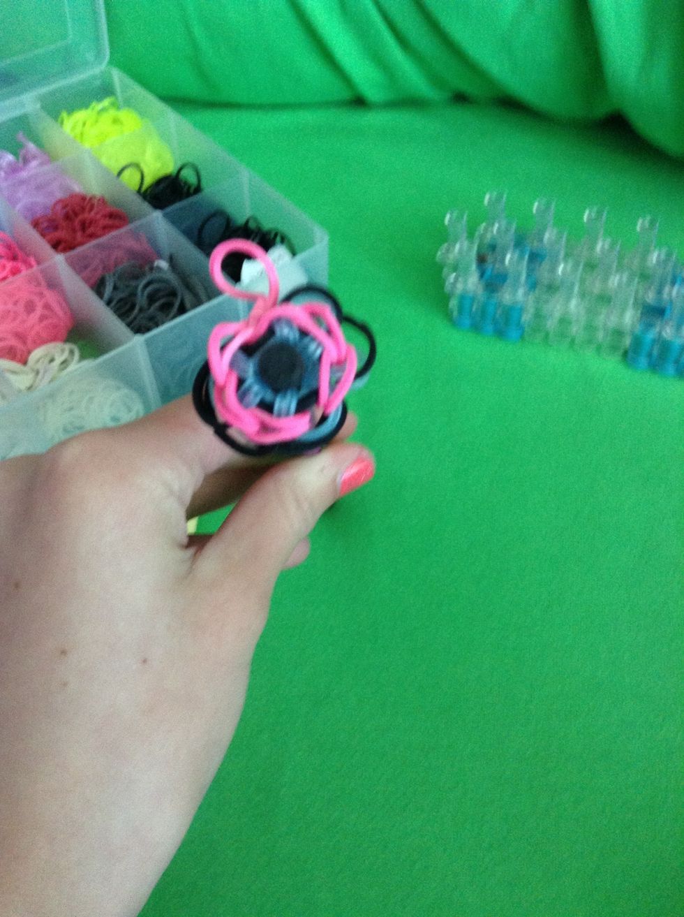 Take your last color of rubber band bands and do the same thing we did on the bottom all the way around