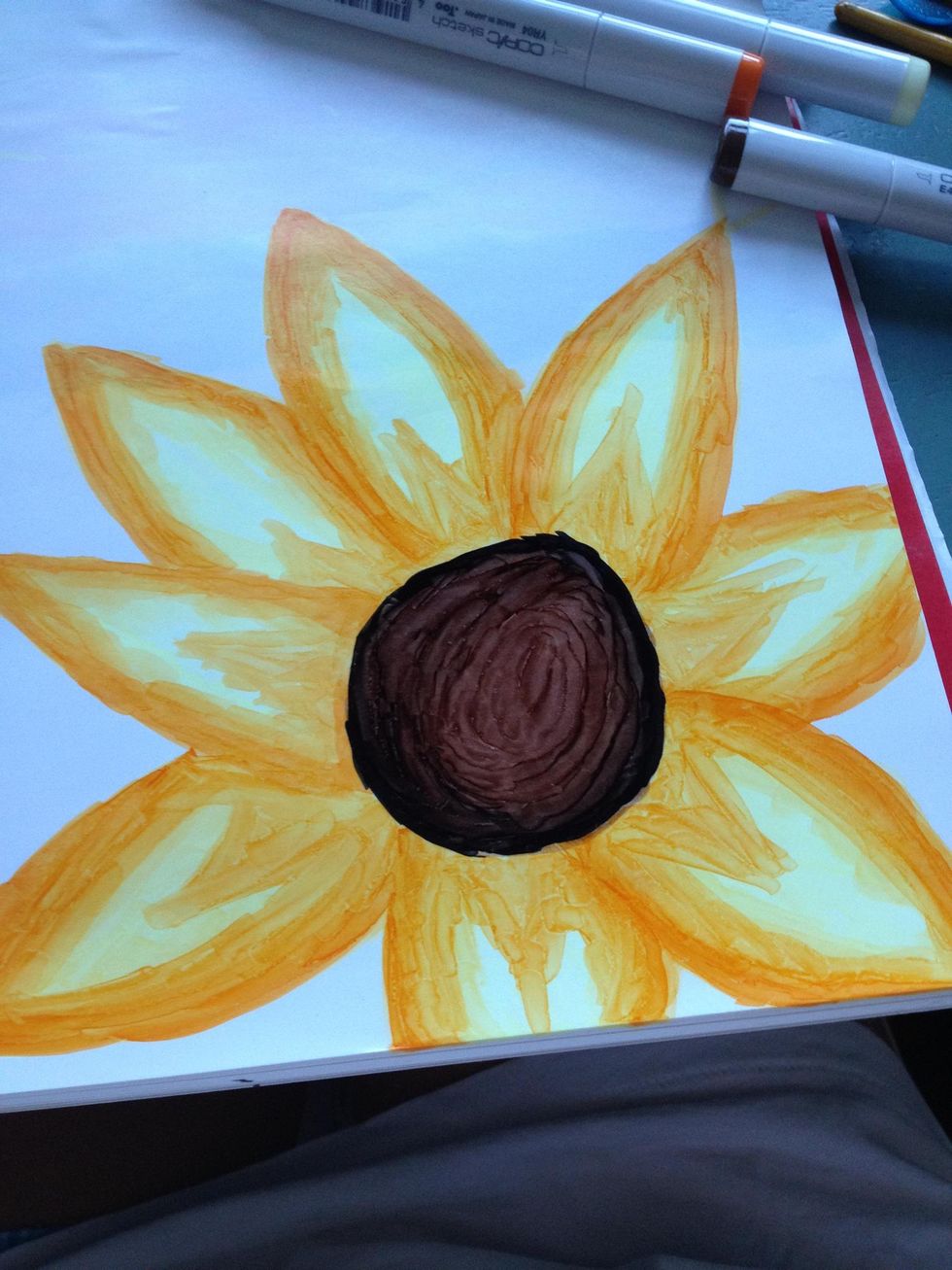 Draw the outline of this flower with a pencil (I didn't have a pencil so I used the lightest color marker to do the outline