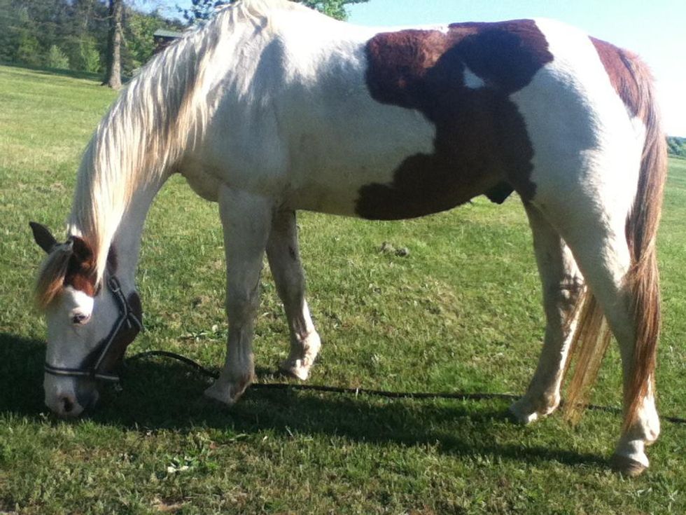 This is the horse that I made the fly spray for :) he has sensitive pink skin so it works like magic for him:) when you spray it on the flys they can't fly anymore because there wings are slippery! :D