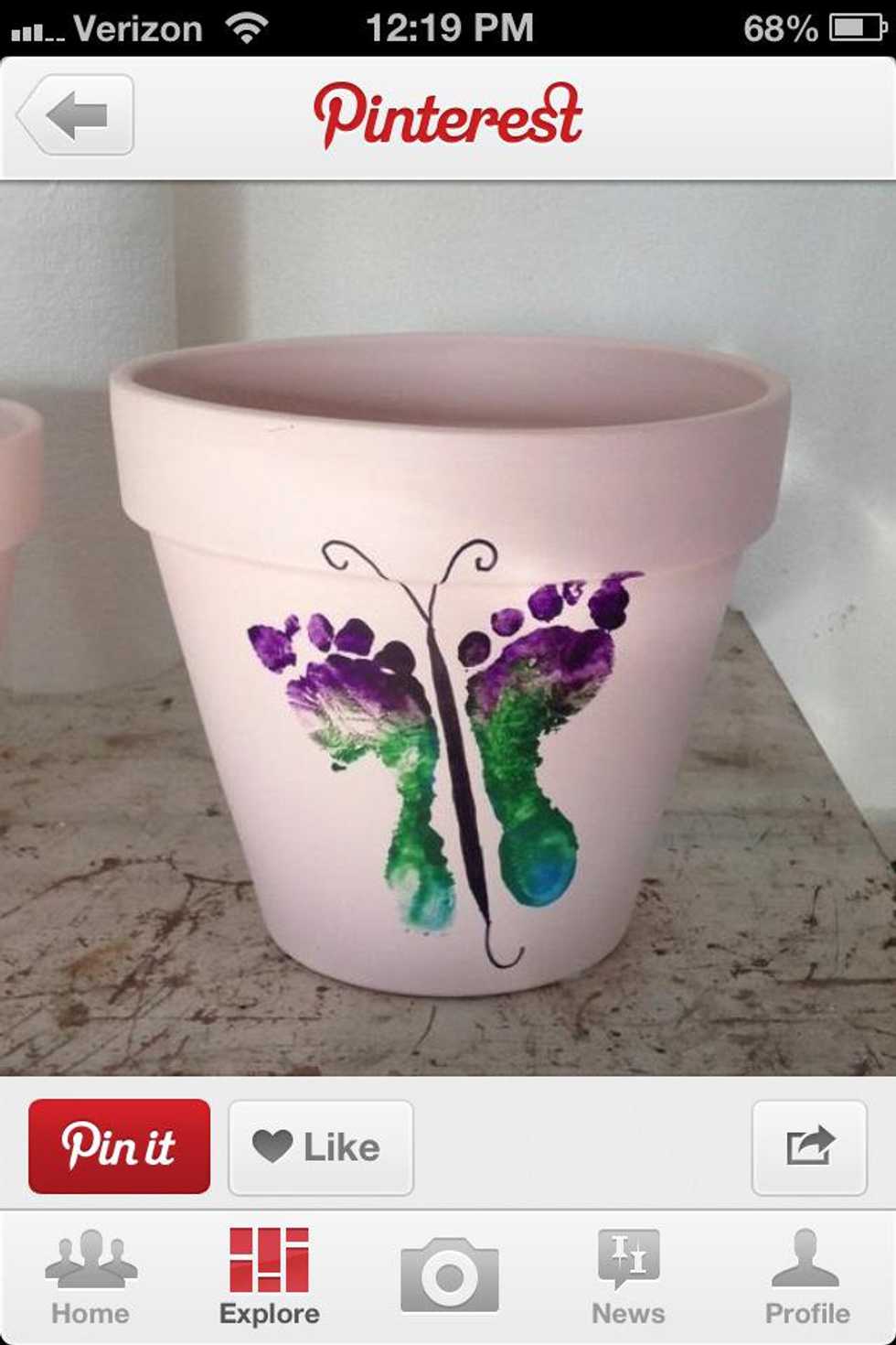I poured the paint out and had them put a foot in. Then I blotted foot on newspaper before putting it on pot. You don't want too much paint on the foot. May have to try a few times -just repaint white