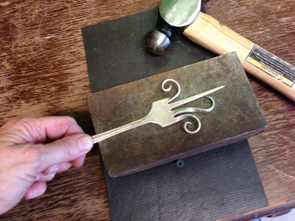 Old forks make strong, graceful, and nicely ample hooks. This is also a good activity to work out frustrations!