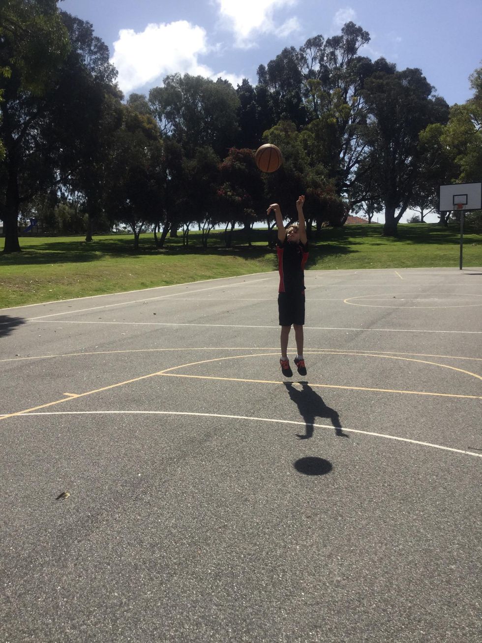 Hold the ball straight on with the hoop, making sure your hands are in a T position.