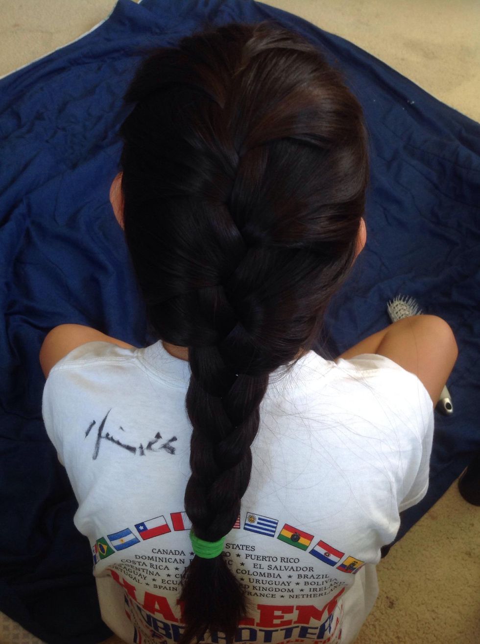 Continue steps 6 and 7. When you have no more hair to add, braid the rest.