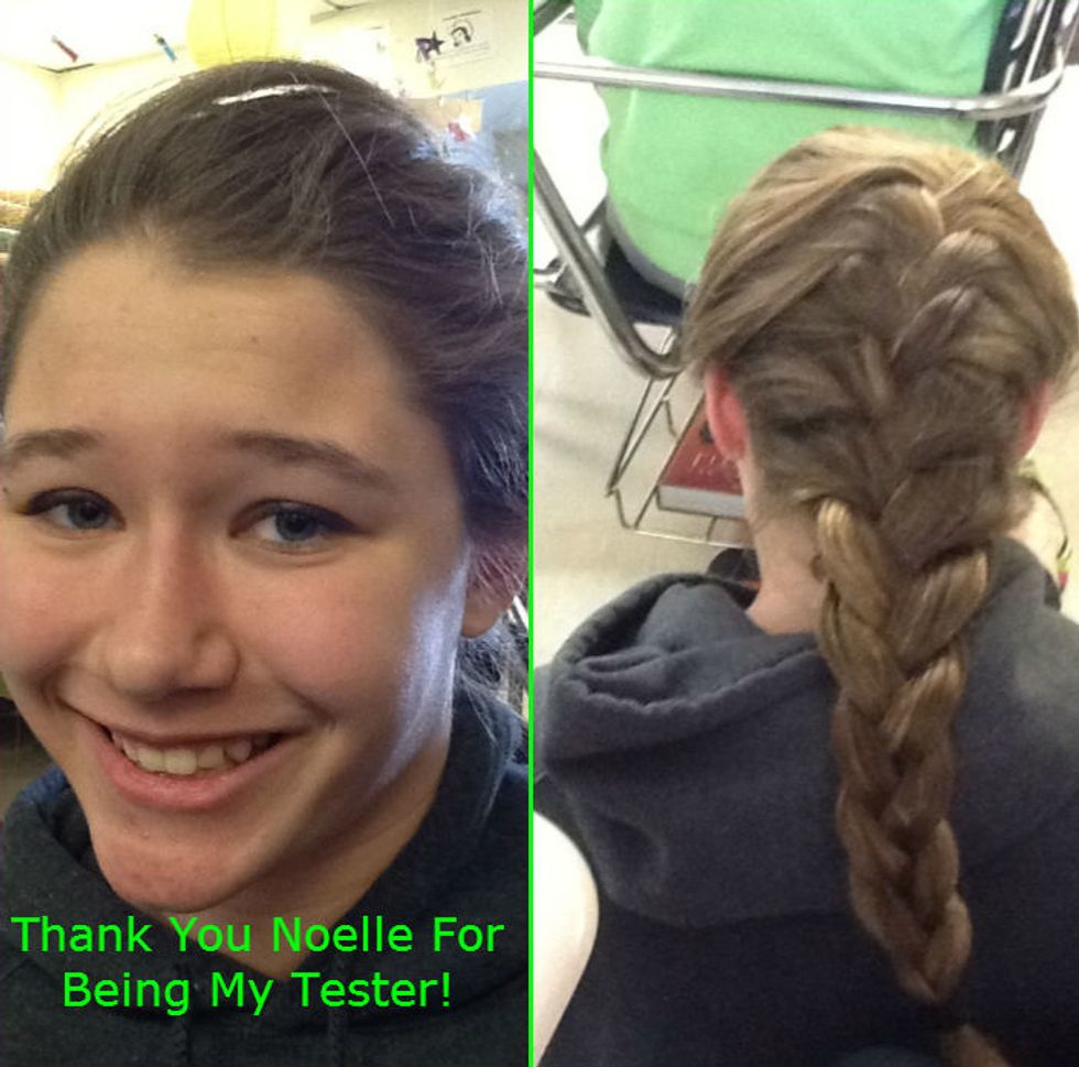 Just like step 10 and step 6, take the RIGHT STRAND and place it over the MIDDLE STRAND and under the LEFT STRAND. You do not need to add any hair because there is none left.