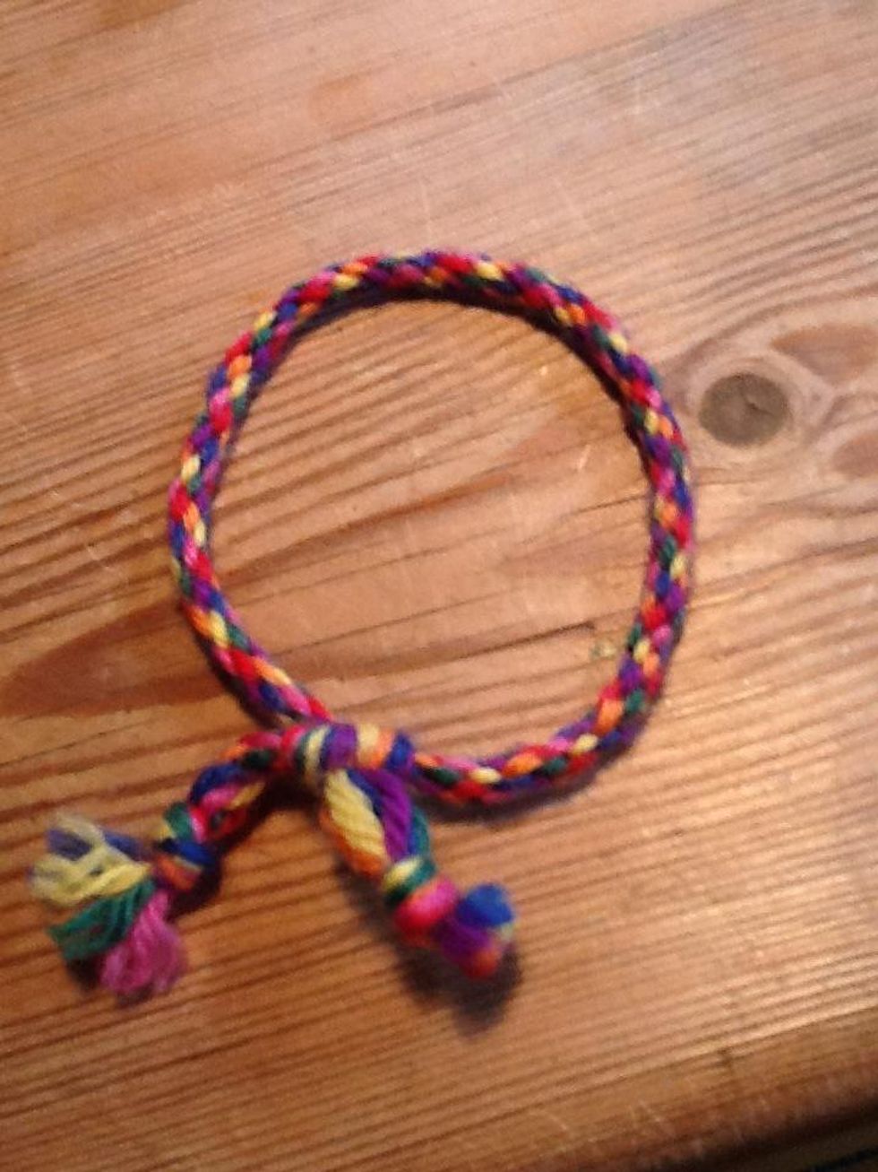 Cut Seven pieces of yarn all the same length dont cut them too small Mine are about 40 cm. And tie a knot in one end