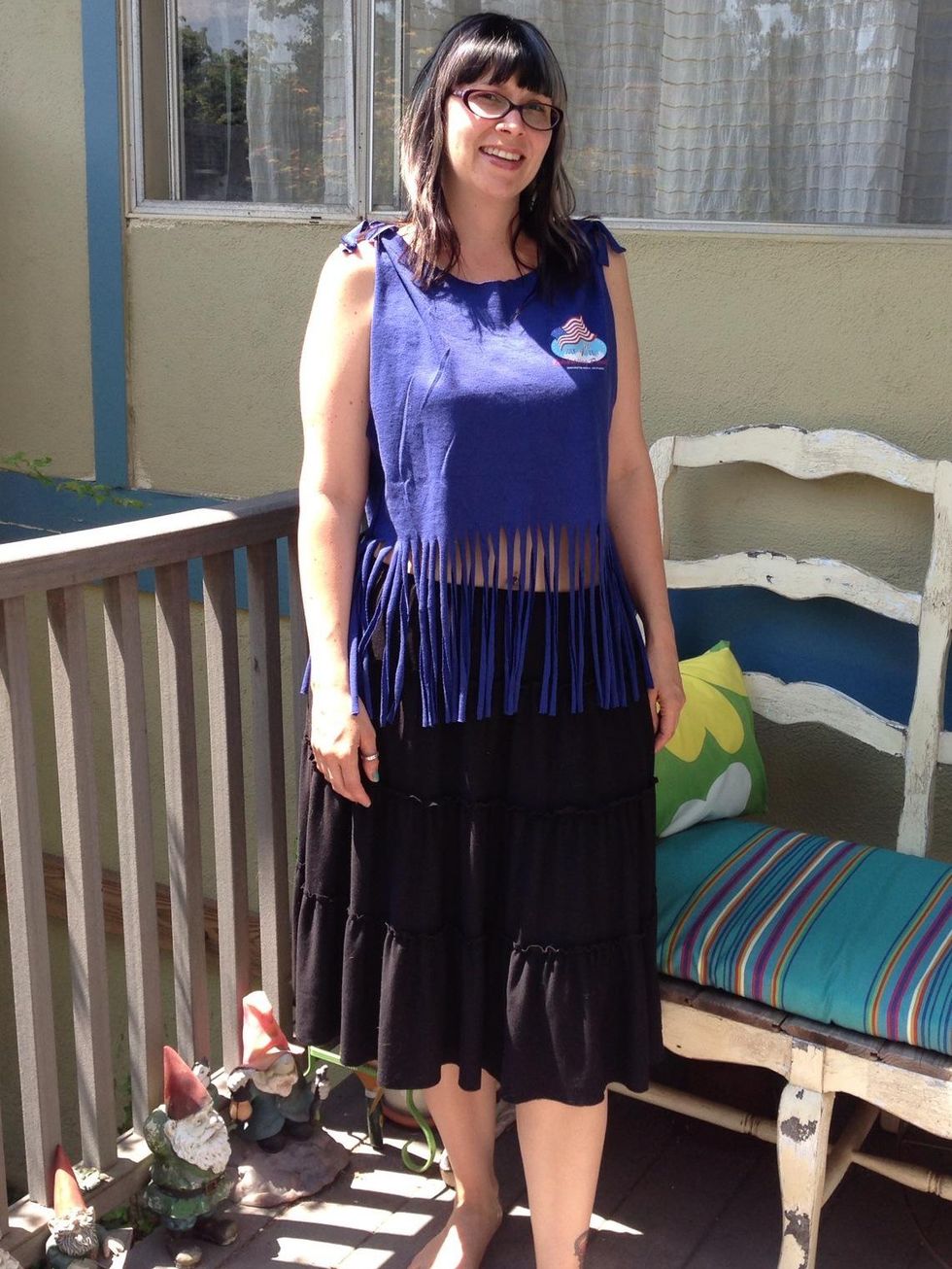 Your shirt should look like this. Remember be creative! You can cut higher or go back later and tie knots on the bottom of each strip or add beads.