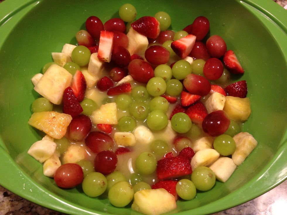 You don't have to use the same fruits that I did. Just make sure you use 5 or more fruits and chill for a couple hours. 🍎🍏🍊🍋🍒🍇🍉🍓🍑🍌🍐🍍