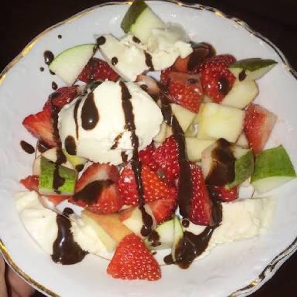Cut up the bananaThen chop up the apple into small piecesCut up the strawberriesMix it all together and drizzle some chocolate sauce on topEnjoy