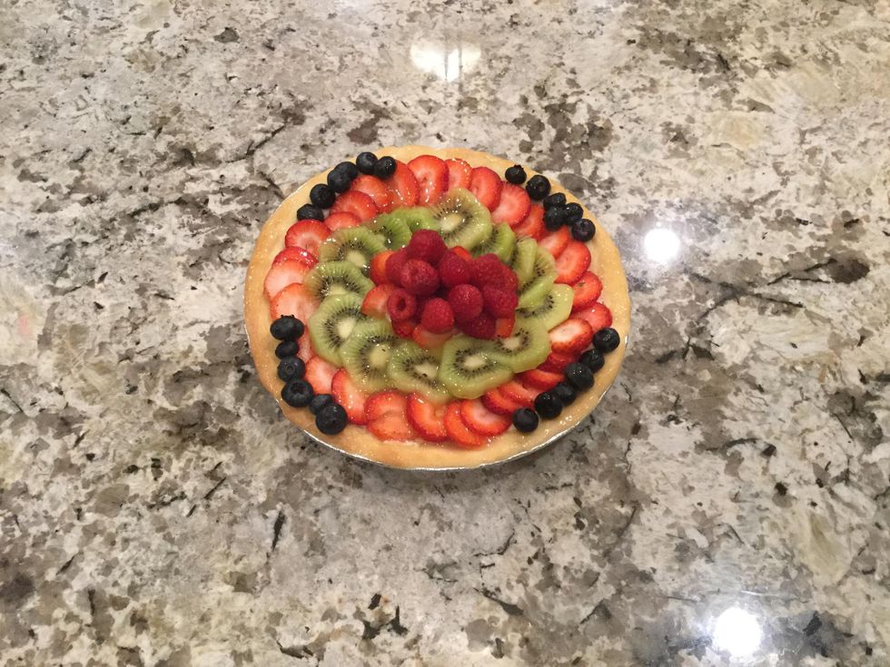 You will need ingredients for your crust, filling, toppings, and glaze. The preparation and baking of the fruit tart cake will take about 45 minutes.