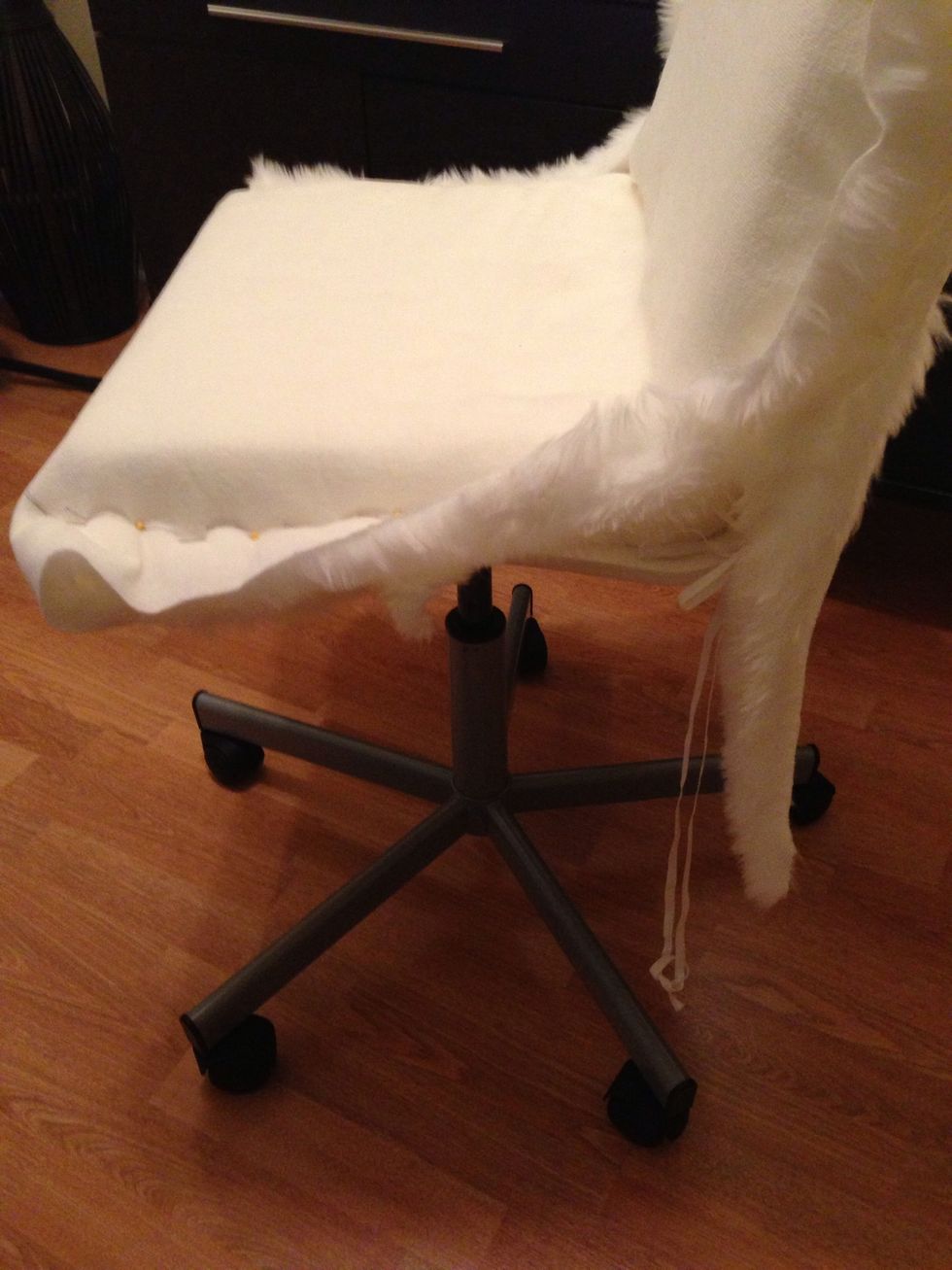 Drape fun fur over the chair. You want to get the most length to wrap right round the chair.