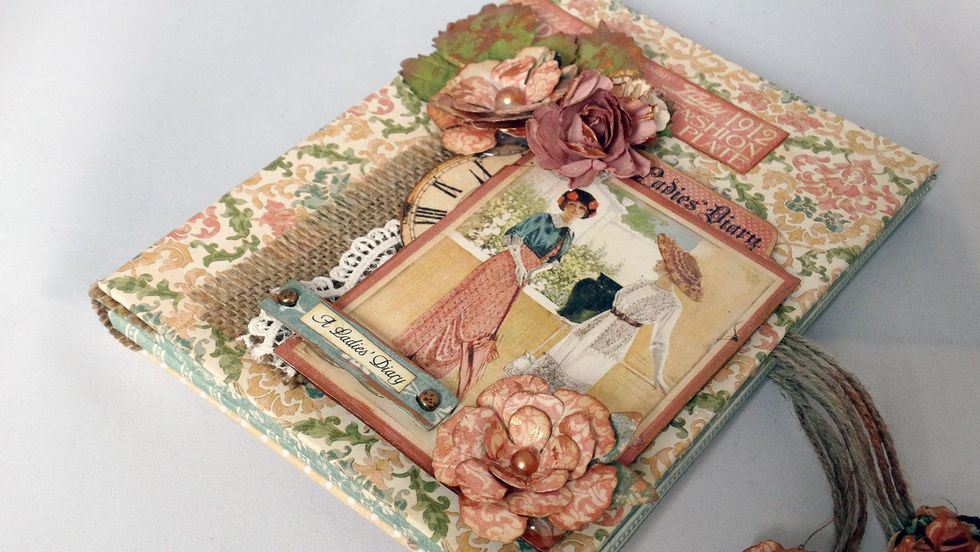 You can use whatever you want, but I have used paper flowers using a Donna Salazar Die cut (Spellbinders)