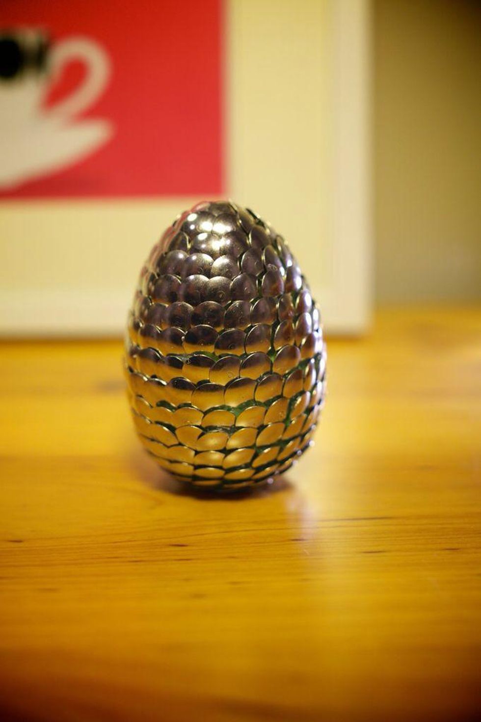 Once your egg has cooled and the glue is dry, remove any excess or visible glue from the pins. Then, enjoy season 3 of Game of Thrones!!!