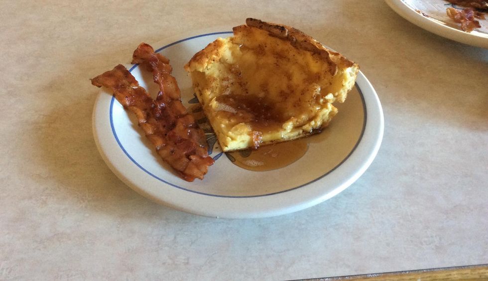 When the oven is done preheating, pour contents of blender into skillet with melted butter.