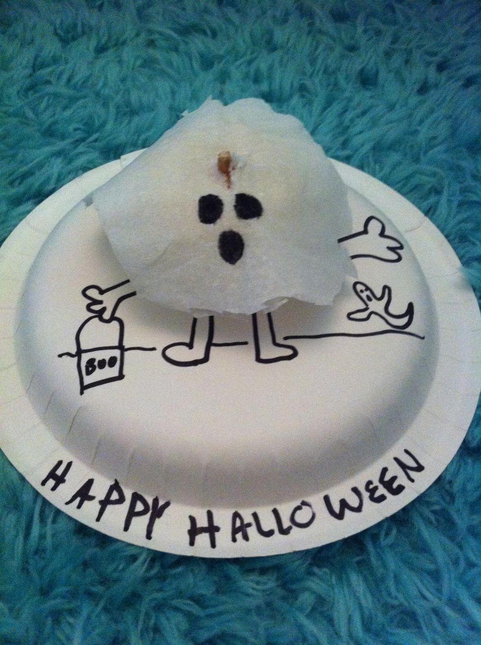 Then put it on the plate and draw! You can also cut out the hands and feet and tape the! Also you can tape down the tissue! I just think its cute! And you still have your pumpkin! 👻Happy Halloween👻
