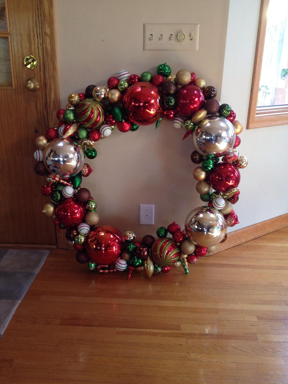Add more ornaments and keep wrapping & gluing as you go around the largest ornaments.